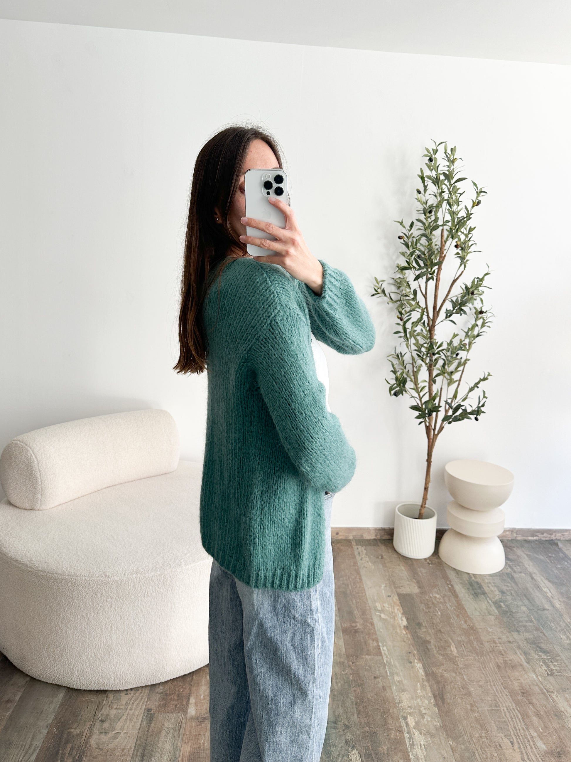 Gilet en mohair vert d'eau