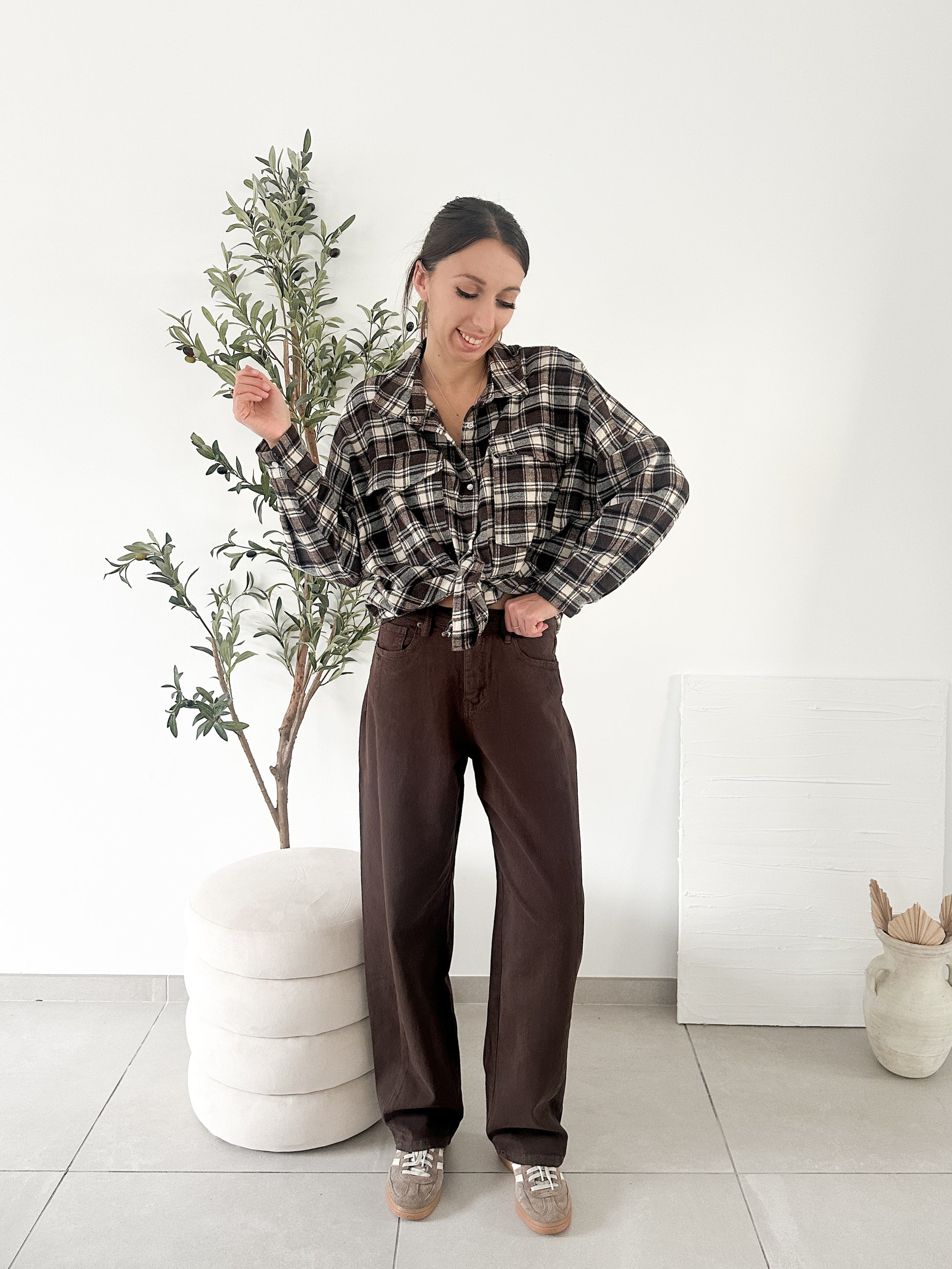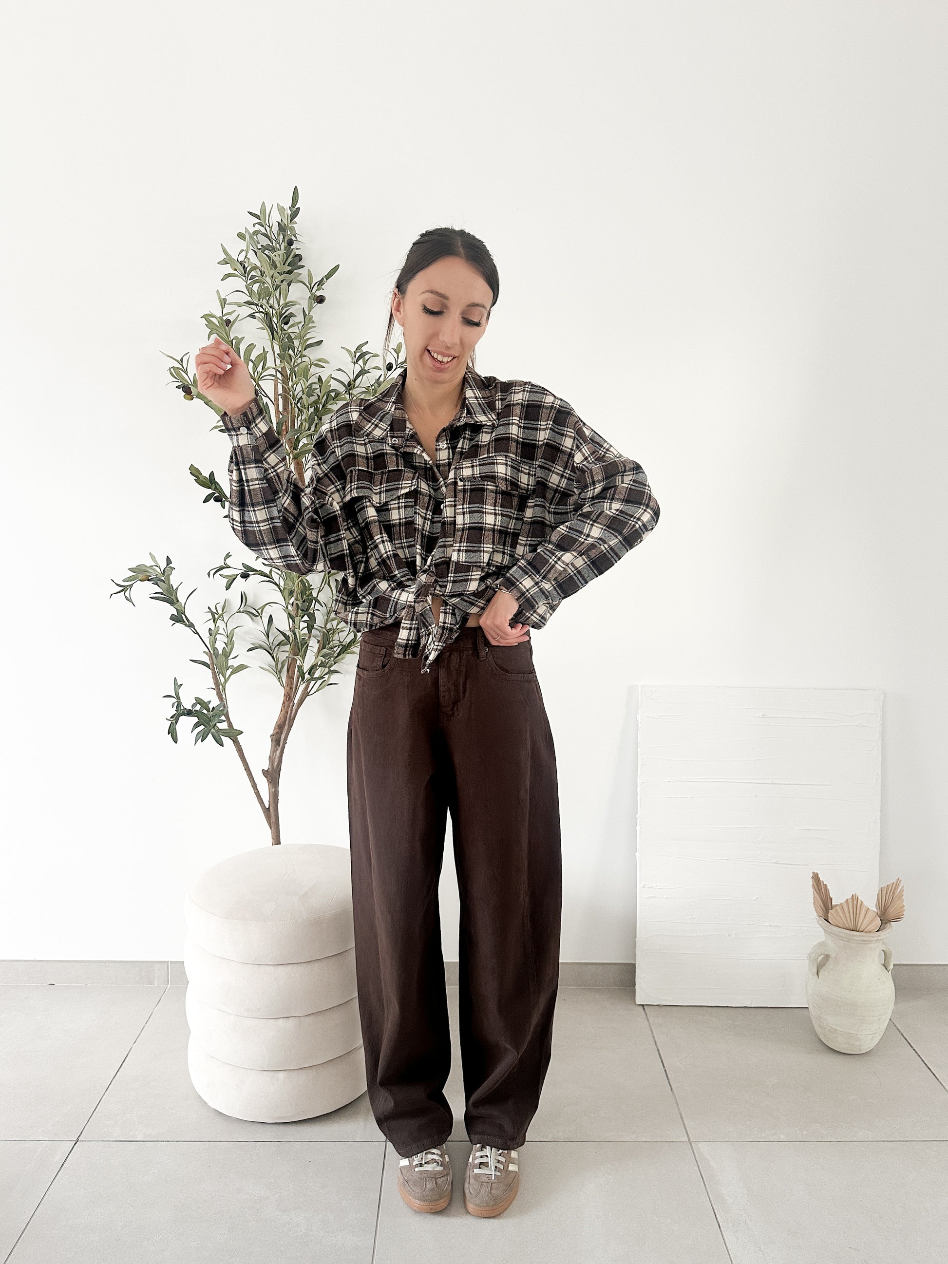 Jean à la coupe arrondie marron chocolat