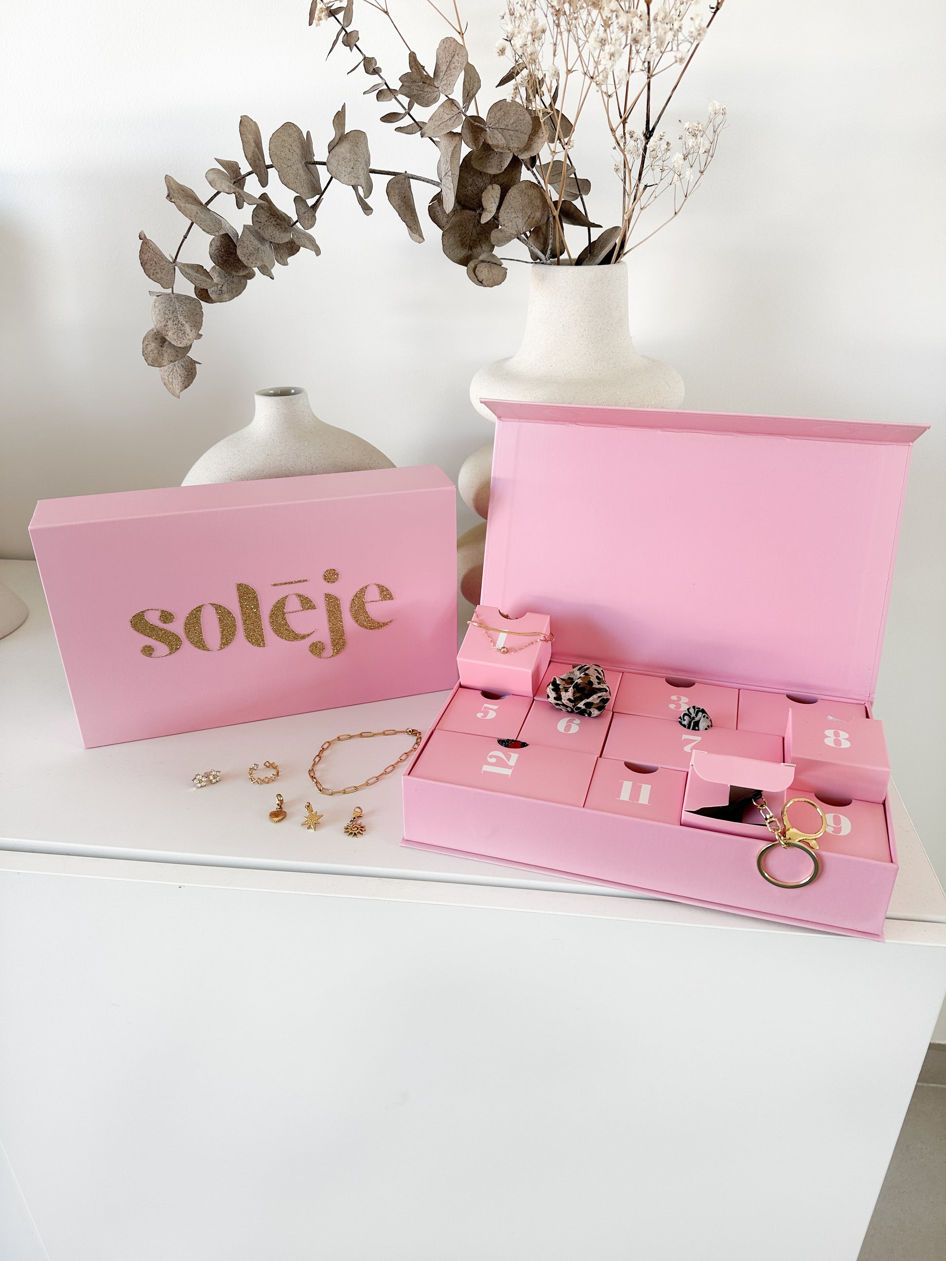Calendrier de l'Avent 12 cases contenant des bijoux en acier inoxydables réglables et des accessoires exclusifs. Valeur de plus de 350 euros.