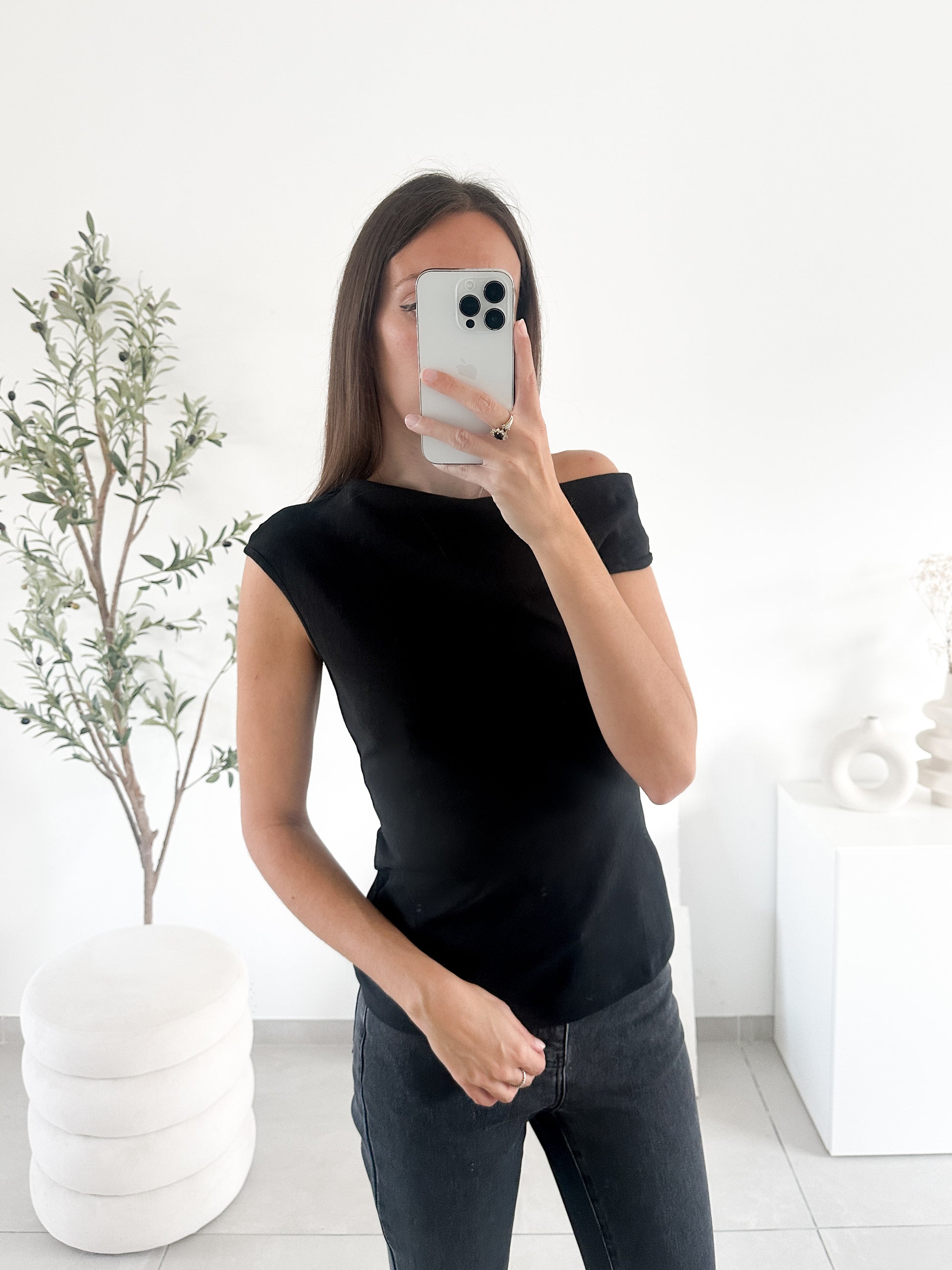 Haut avec t’épaule dénudée en matière épaisse.