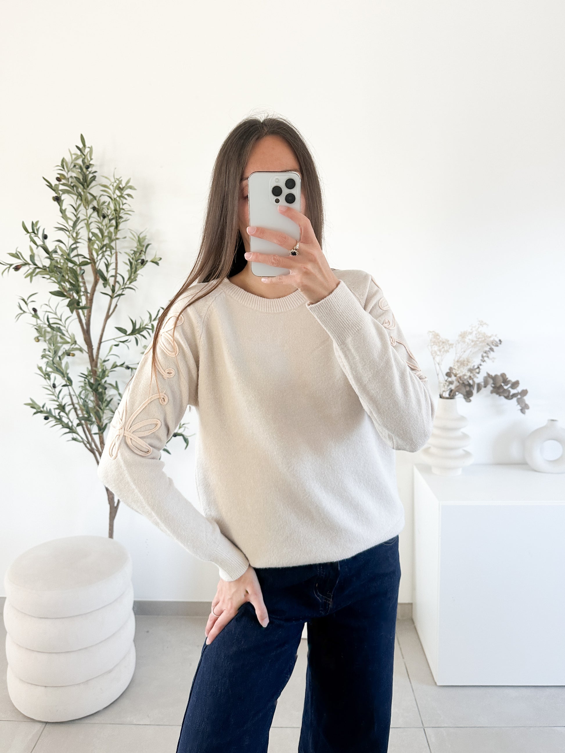 Pull broderie fleur