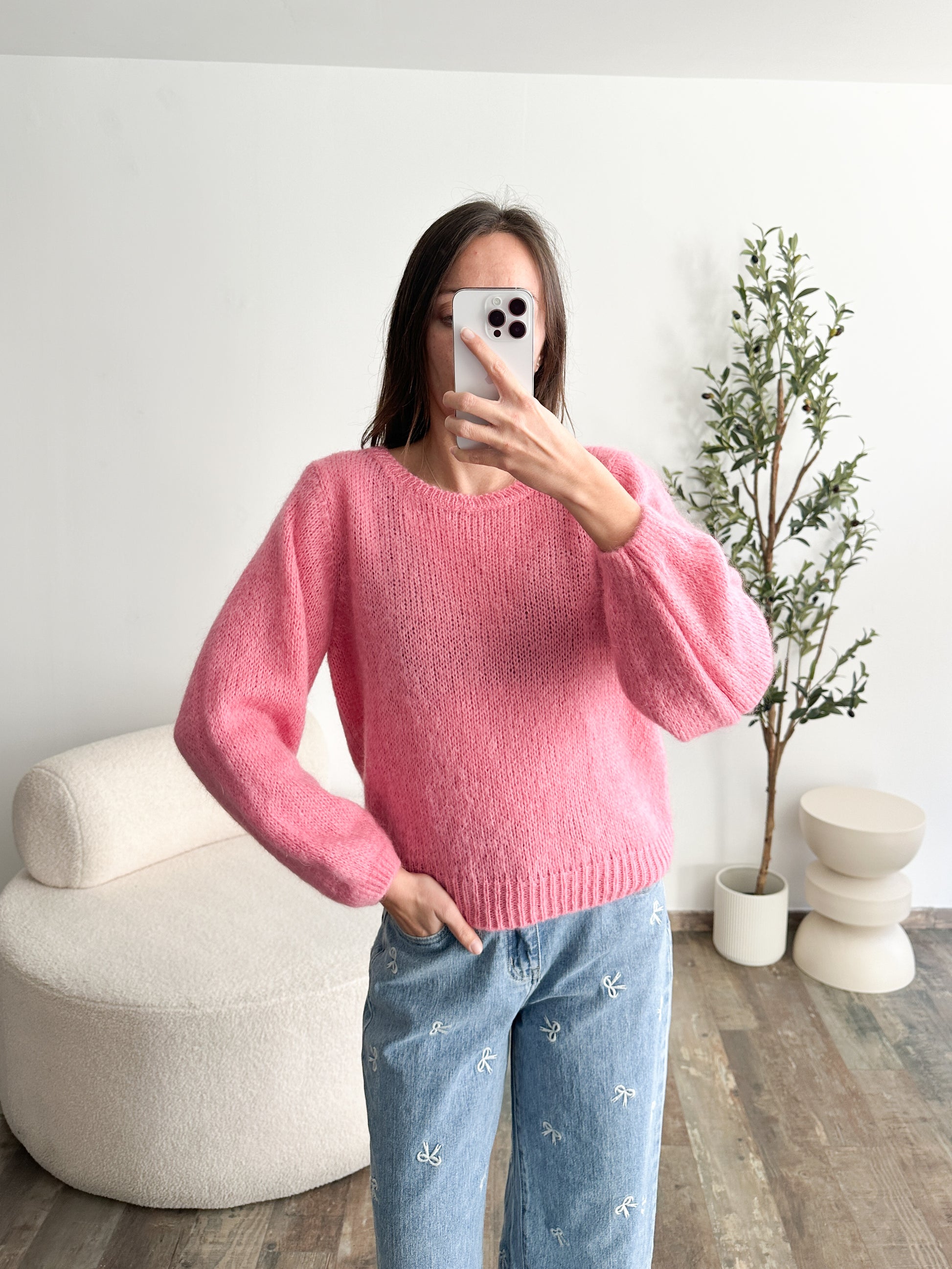 Pull en mohair rose framboise