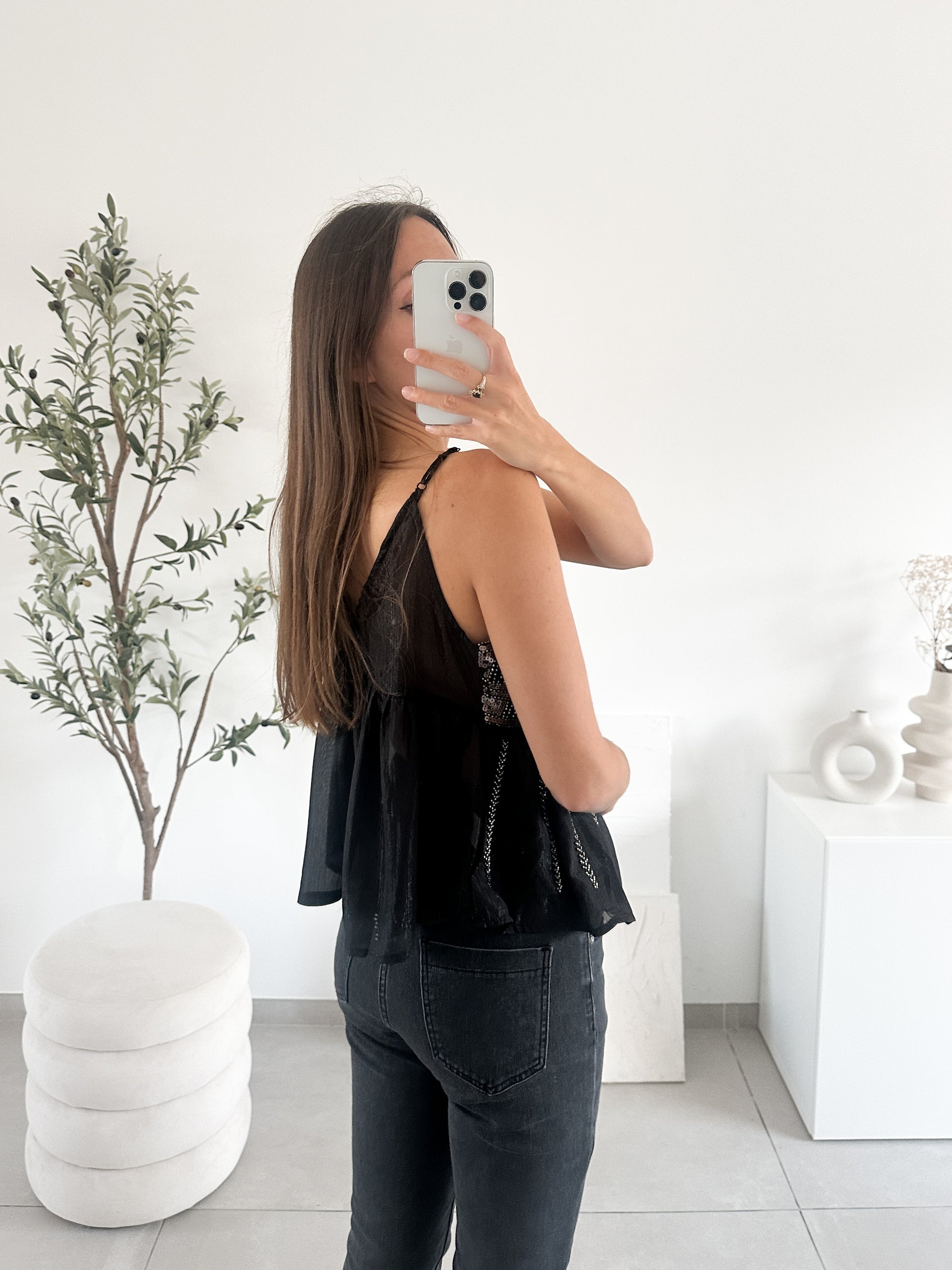 Top à sequins et perles noir